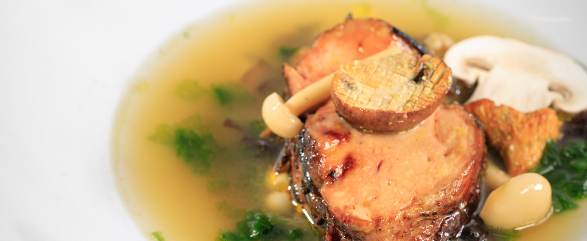 Foie gras brûlé au sucre muscovado et bouillon à la vanille de Tahiti – Recette d’Olivier CLOTEAU